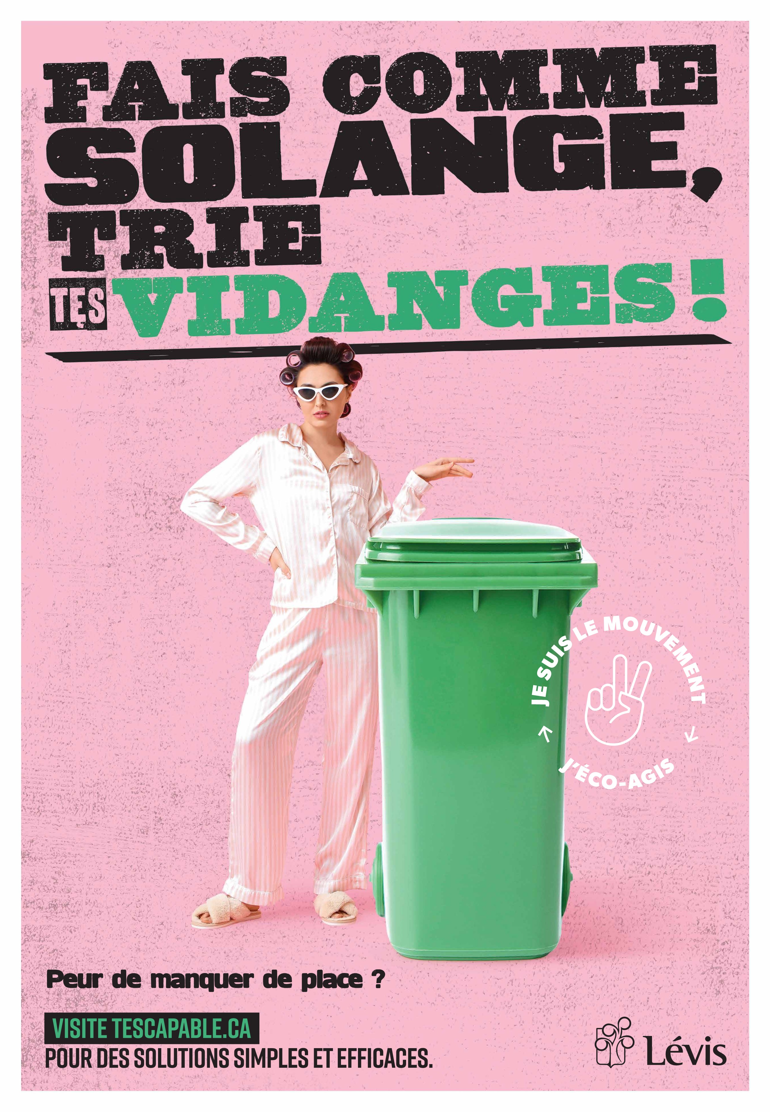 Humoristique, la campagne lévisienne met en vedette Solange, première de classe dans le tri des vidanges et Marcel, "next-level" dans l’art de classer ses poubelles. Deux personnages choisis pour motiver les citoyens à mieux trier dans un contexte de collecte des déchets moins fréquente.