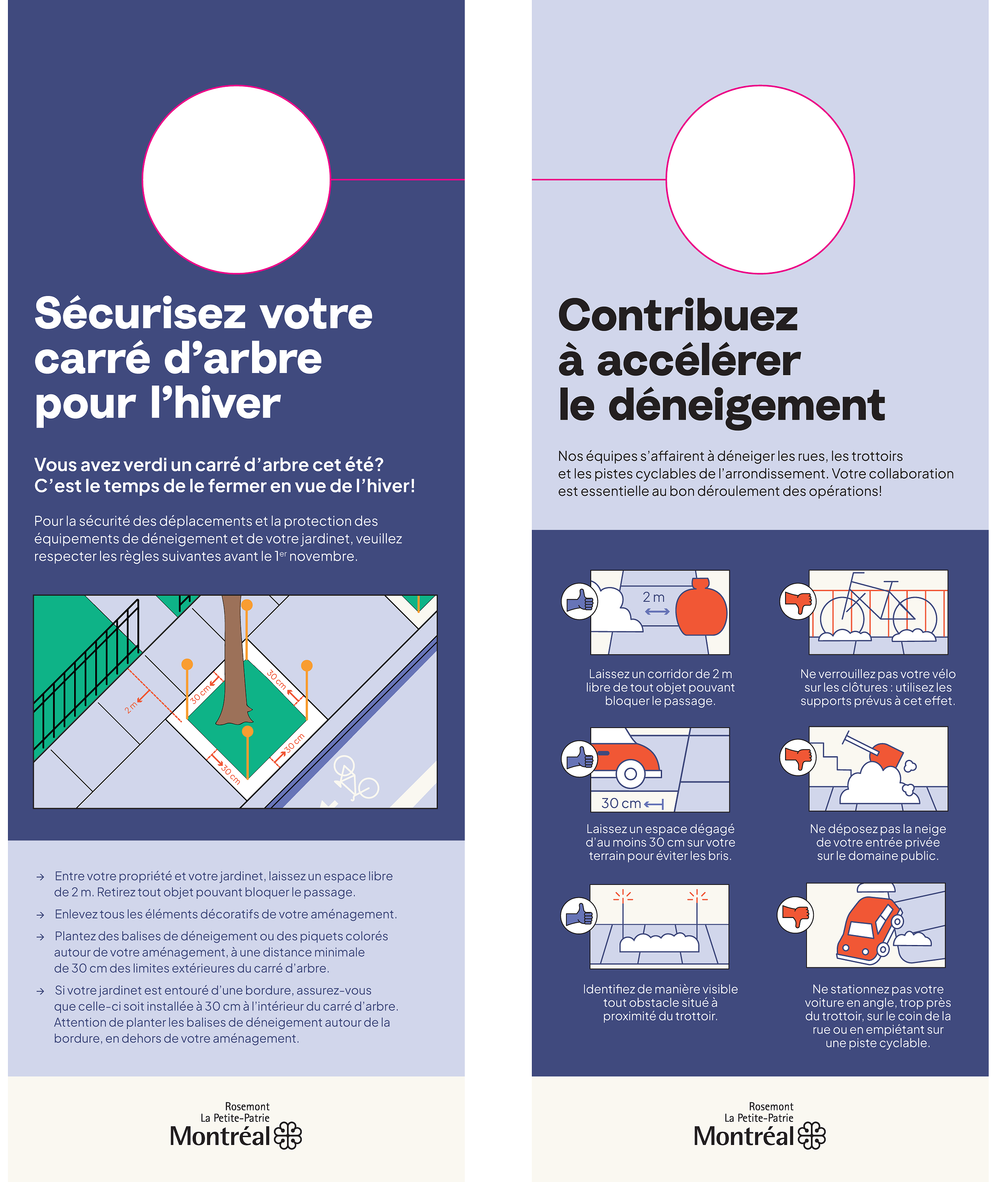 Dans Rosemont–La Petite-Patrie déneiger est un travail d’équipe qui émerveille! Habiles et sympathiques cols bleus, curieux enfants à l'affût des camions, pouces verts, cyclistes, automobilistes, piétonnes et piétons : tout le monde fait son bout de chemin pour faciliter les opérations!