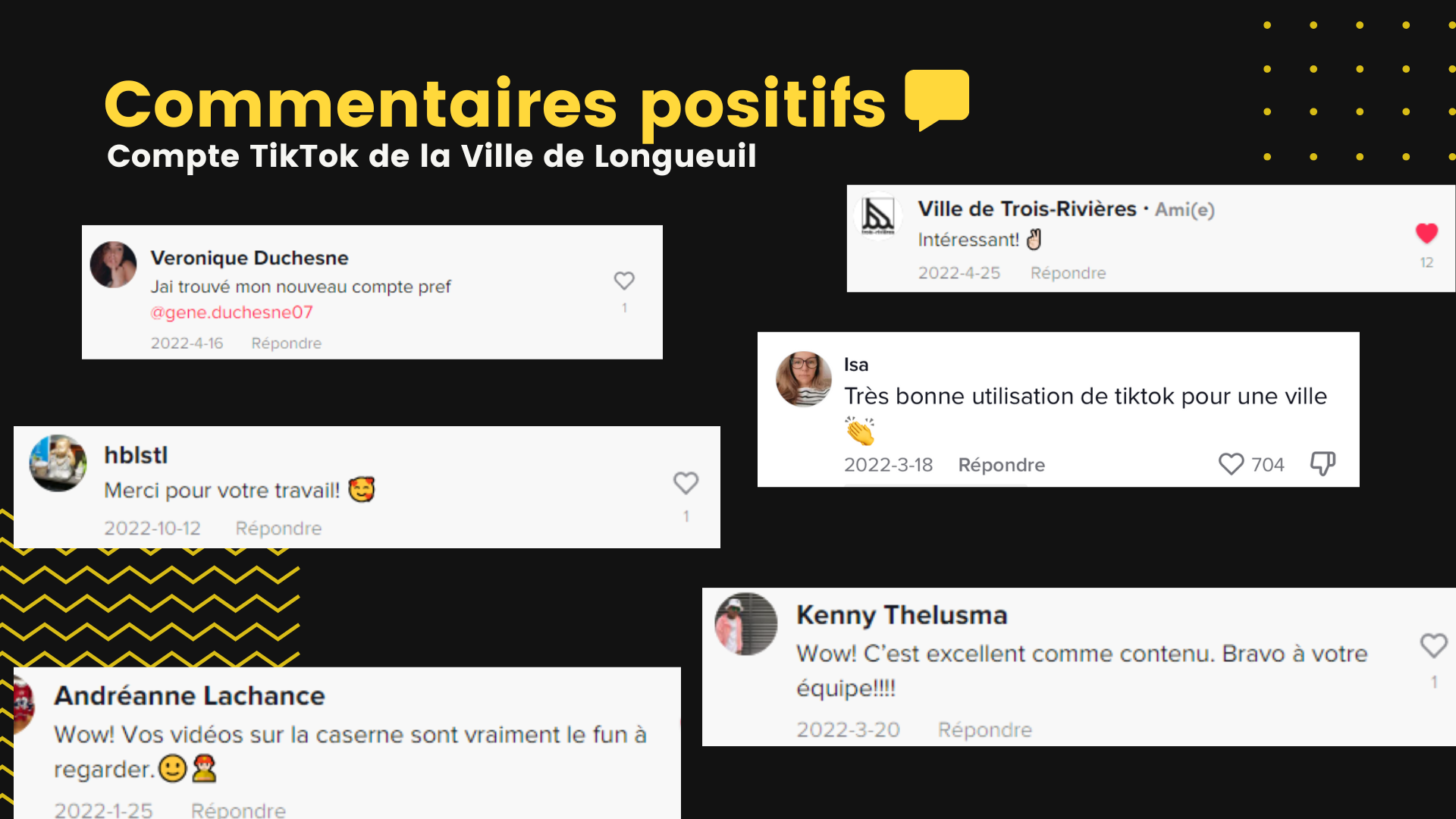 https://www.tiktok.com/@ville_longueuil/video/7076447488126897414 https://www.tiktok.com/@ville_longueuil/video/7091376843323936006