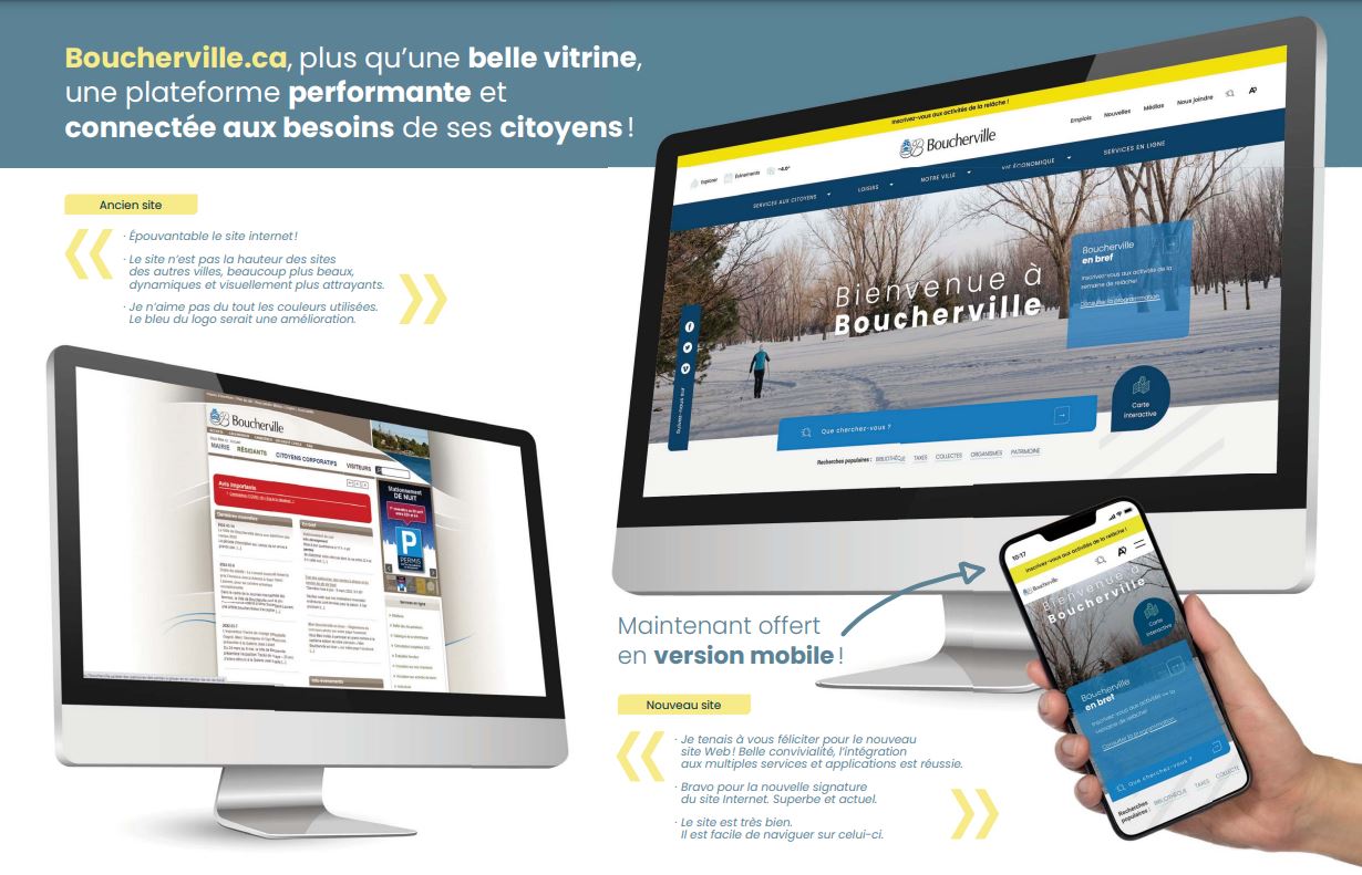 Beaucoup plus qu’une belle vitrine, boucherville.ca est devenu LA référence pour les citoyens. Ses fonctionnalités, sa navigation fluide et son contenu clair et ciblé sur leurs besoins auront accru l’efficacité organisationnelle de la Ville! Un site maintenant à la hauteur des services offerts!